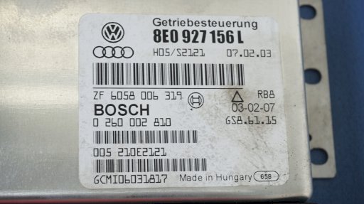 Оригинальное название (на польском): AUDI A4 B6 STEROWNIK SKRZYNI BIEGÓW GBG 8E0927156L