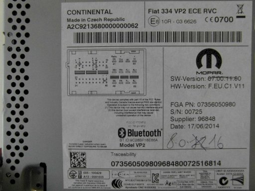 Оригинальное название (на польском): FIAT 500X RADIO BLUETOOTH NAWIGACJA 7356050980