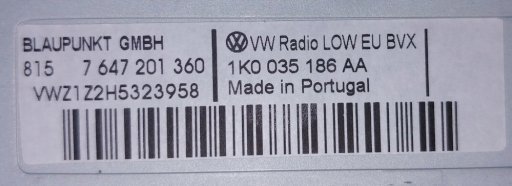 Оригинальное название (на польском): Radio CD Vw Golf 5 Plus Jetta Passat 04- + KOD