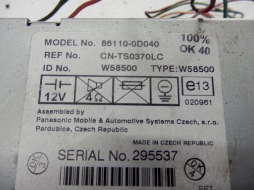 Оригинальное название (на польском): TOYOTA YARIS I 04 5D RADIO FABRYCZNE 86110-0D040