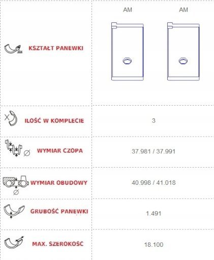 (На польском: voyager 2.8 crd vm47c 06-08r panewki głowne)