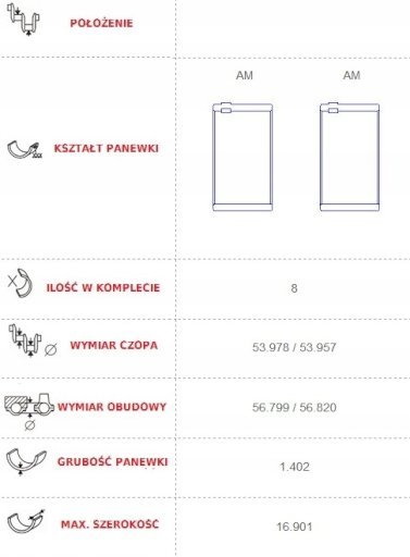 (На польском: voyager 2.8 crd vm47c 06-08r panewki głowne)