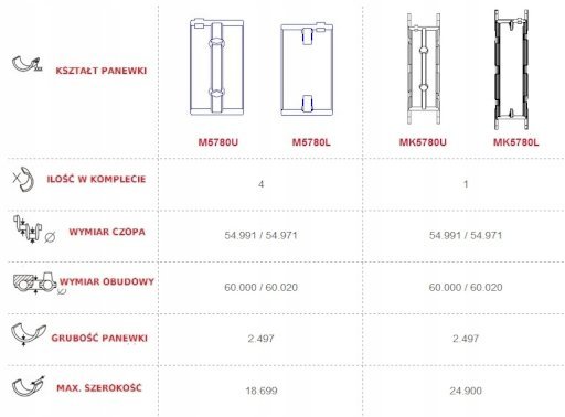 (На польском: panewki silnika wału jeep willys m38 cj-5 m38a1)