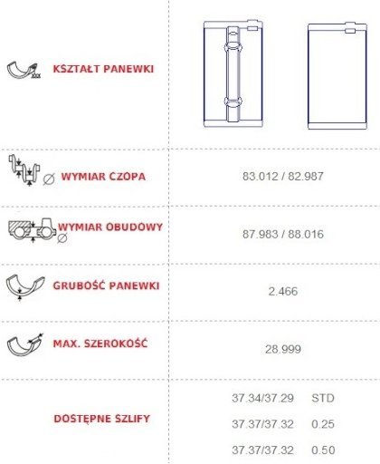 (На польском: renault 1.5 dci k9k wał silnika panewki)