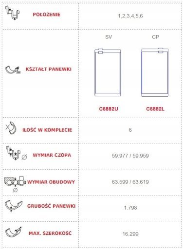 (На польском: voyager 2.8 crd vm47c 06-08r panewki głowne)